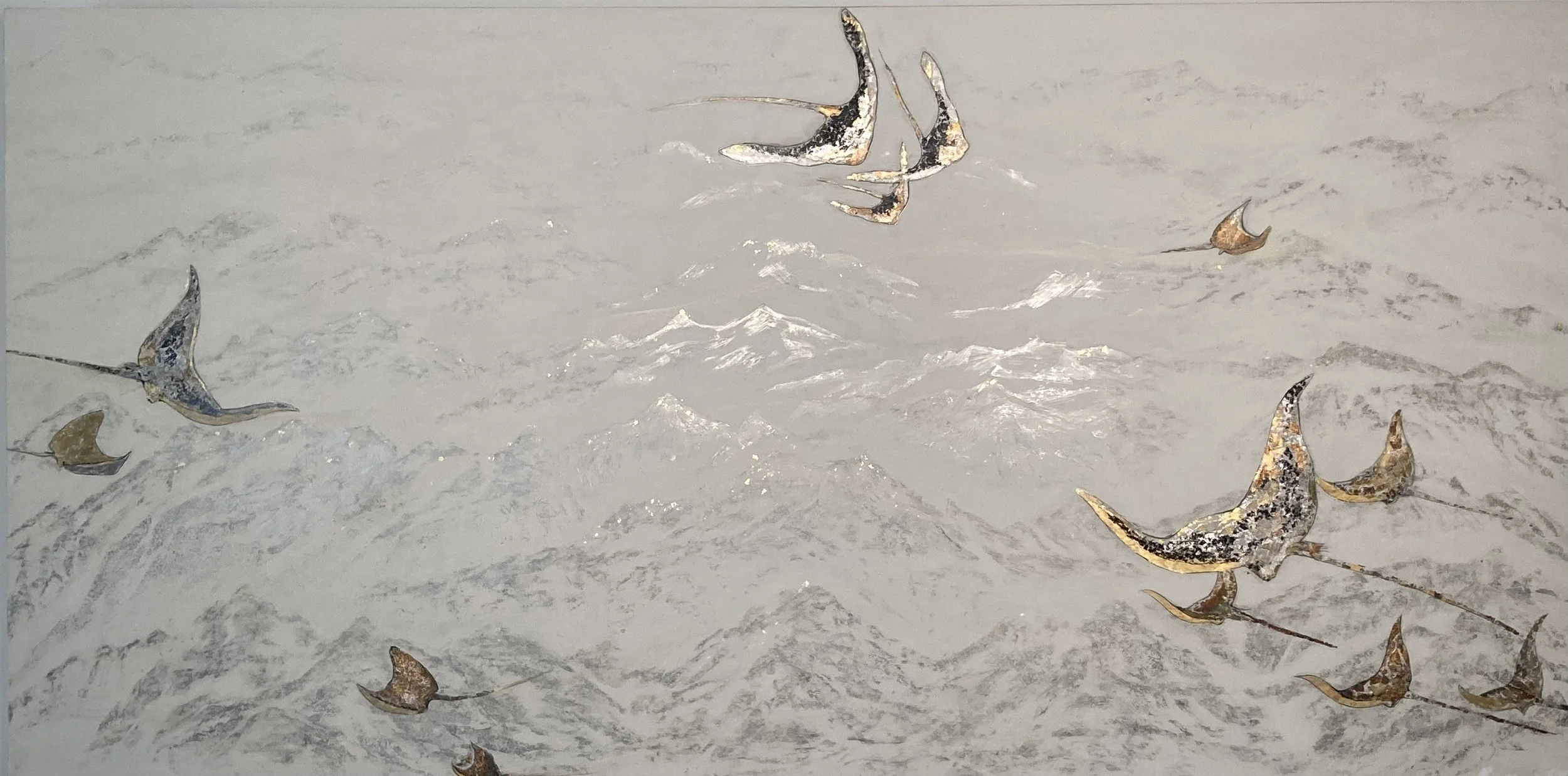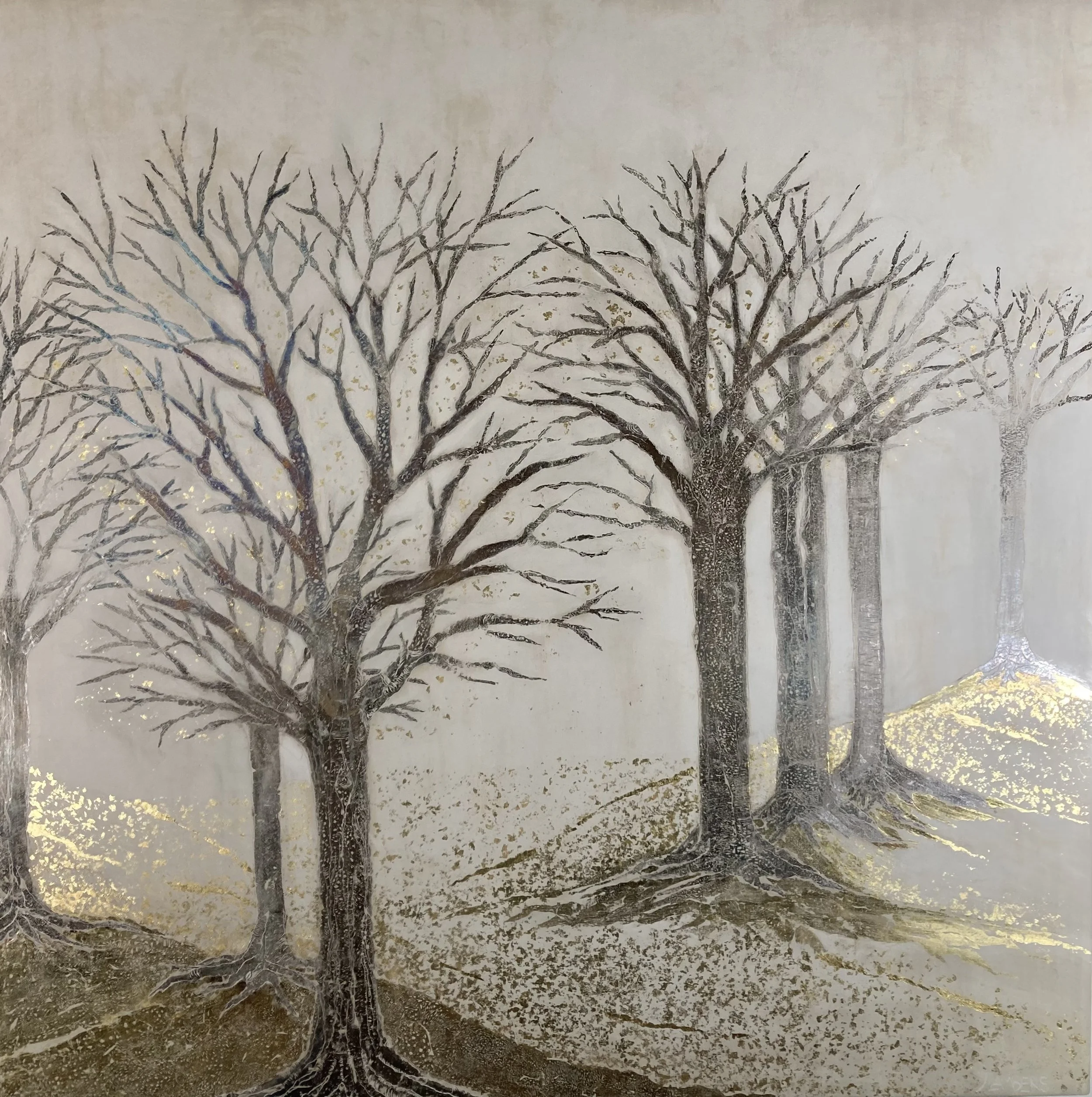 Lambers, a Master Artist and Gilder certified by the German Guild Academy, transforms gold, silver, and platinum leaf into meditative reflections on nature’s beauty and transience. Drawing inspiration from the infinite cycles and quiet endurance of the natural world, she uses the subtle lustre of precious metals to reveal light, depth, and emotion within each composition.