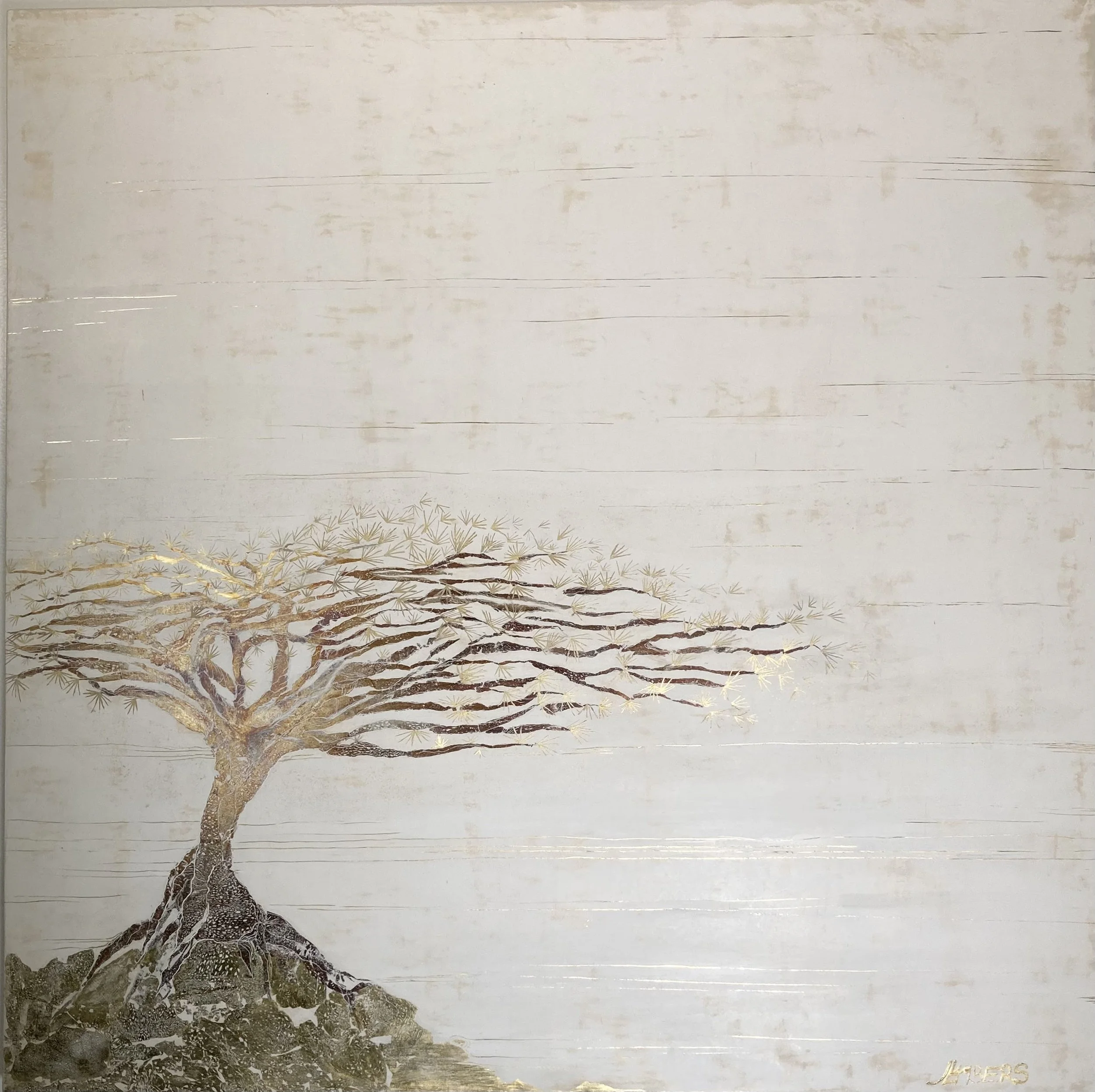 Lambers, a Master Artist and Gilder certified by the German Guild Academy, transforms gold, silver, and platinum leaf into meditative reflections on nature’s beauty and transience. Drawing inspiration from the infinite cycles and quiet endurance of the natural world, she uses the subtle lustre of precious metals to reveal light, depth, and emotion within each composition.